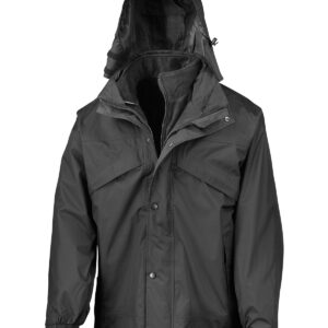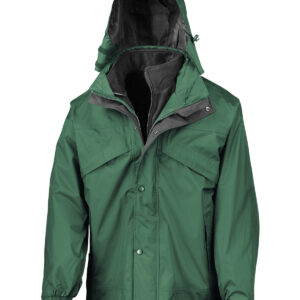 Double stitched taped seams. Concealed fully featured hood in collar with chin guard and shockcord adjuster. Full front heavy duty 2-way zip fastening. Zip and clip system for attached to inner jacket. 2 spacious side pockets and 2 spacious chest pockets. Elasticated cuffs with tear release adjusters. Adjustable shockcord hem and stud closing double storm flap. Underarm ventilation eyelets. Wrinkle/crease resistant fabric. High zip through collar with shockcord adjusters. Stud closing double storm flap. Inner jacket. 2 spacious side pockets. Full front zip fastening. Elasticated cuffs. Contains recycled material.Decoration Guidelines:Decorating methods: Outer: Embroidery, Transfer print & Screen print transfer. Inner: Embroidery & Transfer print. Decorators access point: Concealed Inner back & left chest zips.