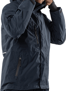 Airtech® waterproof, windproof and breathable / Taped seams / Detachable and adjustable hood / Fleece-lined collar / Concealed front zip under placket with velcro fastening / Chest pocket with zip / Map pocket with zip, accessible when garment is closed / 2 fleece-lined front pockets with zip / Inside pocket with zip / Pre-shaped elbows / Adjustable sleeve ends / Elastic inner cuffs with thumb grip / Ventilating panel at back / Adjustable drawstring at bottom / Extended back / Reflective details / Zip in lining for transfer and embroidery / Waterpillar 20,000 mm / Breathability Airtech® material RET <15 / Approved according to EN 343 class 4/4 / OEKO-TEX® certified.