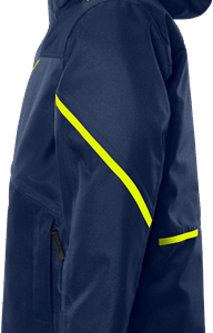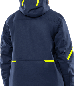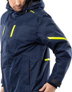 Airtech® breathable, water and windproof / Reinforced front, shoulders and sleeves / Quilted lining / Fleece-lined collar / Detachable lined hood adjustable with drawstring / Front placket opening with zip to top of collar and velcro fastening / 2 chest pockets with zip / 2 front pockets with zip / Map pocket with zip and inside mobile phone pocket, accessible when garment is closed / Zip in lining for easy embroidery and transfer / Adjustable drawstring at bottom / Pre-shaped sleeves / Adjustable sleeve end with inner cuff / Reflective details at back / Waterpillar 10.000 mm / Breathability Airtech® material RET <12 / Garment approved according to EN 342 and EN 343 class 4/1. Outer fabric approved according to EN 343 class 4/4 / OEKO-TEX® certified.