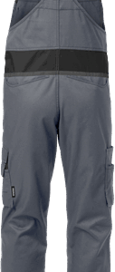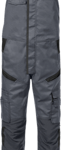 Mechanical stretch fabric / Dark grey reflective details / Adjustable braces with elastic part / Full length front zip with concealed snap fastening / 2 chest pockets, one with flap with snap fastening / 2 front pockets / 2 back pockets / 2 thigh pockets / Leg pocket with extra pockets / Loop for folding rule inside leg pocket / Leg pocket with flap and velcro fastening, mobile phone pocket and extra pocket with flap and velcro fastening, D-ring under flap / CORDURA® reinforced knee pockets with outside opening / Height adjustment for knee pads in knee pocket / CORDURA® reinforced leg ends / Approved according to EN 14404 together with kneepads 124292 / Leasing-laundry tested according to ISO 15797 / OEKO-TEX® certified / RFID chip can be added as a VAS solution.