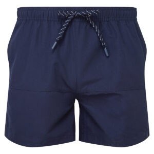 Panelled swim shorts. Tie waist. Two eyelets. Striped tie cord with caps. Elasticated waist. Mesh inner lining. Two side pockets. Single zip-fastening pocket on the back. Product contains no branded neck label. Removable Kimble or looped garment tags. Inner seam label holds important product information on one label with a second label containing brand information which can be cut-away. Please note old stock may contain a fixed branded label