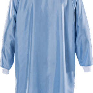Concealed zip / Side vents / Round neck with snap fastening / Elasticated cuffs / Raglan sleeves / Impermeable bound seam / Autoclavable 121° C max 20 min / Material approved according to EN 1149-3 / ISO class 7 / OEKO-TEX® certified.