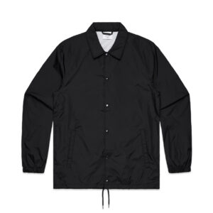 The AS Colour Coach Jacket, a regular fitting outerwear style crafted from light weight nylon with a polyester lining. Features include a collared design, snap dome closure, two side pockets, and elastic cuffs. Complete with a drawcord hem for a versatile, functional style.