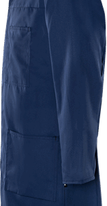 Front placket opening with snap fastenings / Two chest pockets / Two side pockets / Inside pocket / Leasing-laundry tested according to ISO 15797 / OEKO-TEX® certified.