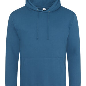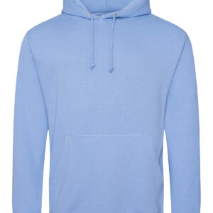 Twin-needle stitching detailing. Double fabric hood with self coloured cords. Kangaroo pouch pocket. Ribbed cuffs and hem. Soft cotton faced fabric creates ideal printing surface. Simple tear out label makes it perfect for rebranding. Brushed inner fabric.