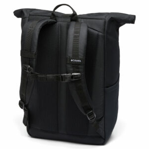 Made with a PU-coated fabric, this unisex 27L roll top backpack resists to wind and rain and offers a reliable protection for your travel essentials. This backpack can fit up a 15 inch laptop in its dedicated sleeve and all your travel essentials as its roll top closure is adaptive. It also provides two water bottle pockets and a zippered front pocket. With a breathable back panel, contoured padded shoulder straps, and adjustable sternum strap, this 27L backpack is comfortable to carry.