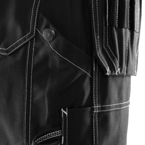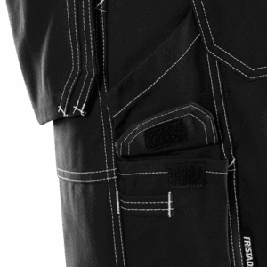 2 tuckable, CORDURA®-reinforced loose-hanging pockets, one with 3 small pockets and tool pocket, the other with extra pocket / 2 front and back pockets / D-ring / Hammer loop / 2 folding rule pockets, one with pen pocket and button and loop for sheath knife, the other with mobile phone pocket and loop for ID-card holder / Inside leg length 20 cm / OEKO-TEX® certified.