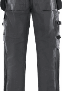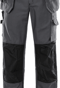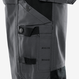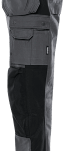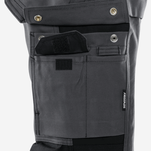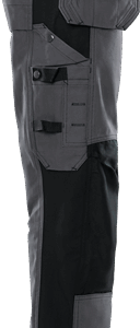 2 tuckable, CORDURA®-reinforced loose-hanging pockets, one with extra pocket, the other with 3 small pockets and tool loops / 2 side pockets / 2 large, CORDURA®-reinforced back pockets / D-ring / 2 hammer loops / CORDURA®-reinforced folding rule pocket with pen pocket, pocket for tools or extra sheath knife, 2 knife buttons and loop / Leg pocket with snap fastening, phone pocket and extra pocket with loop for ID-card holder / CORDURA®-reinforced knee pockets with inside opening / Height adjustment for knee pads in knee pocket / Approved according to EN 14404 together with kneepads 124292 / OEKO-TEX® certified.