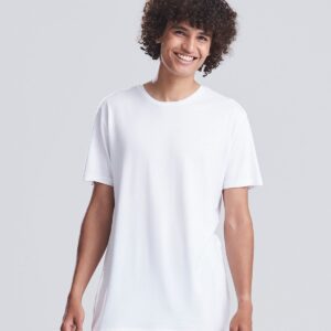 80% LENZING™ ECOVERO™, 20% organic cotton. Single Jersey. Ribbed collar. Taped neck. Side seams – non tubular body. Twin-needle detail at hem and sleeve. Set-in sleeves. Crew neck. Fashion fit. Size label only for easy rebranding.