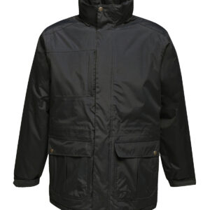 Concealed hood with adjusters. Adjustable cuffs. 2 lower pockets with zipped hand warmers and 2 lower cargo pockets. Mobile phone pocket. Inner security pocket and zipped chest pocket. Concealed zip entrance in lining for embroidery access. Shaped fit.