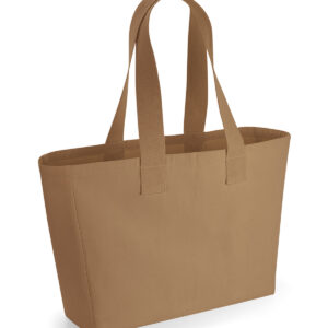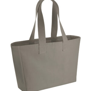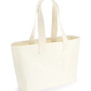 100% Cotton canvas (10oz/yd?). Oversized style. Soft webbing handles for maximum comfort. Can be carried by hand or over the shoulder. TearAway label for easy rebranding.