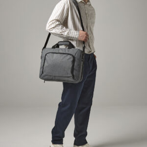 Triple compartment design. Laptop compatible up to 17". Padded laptop compartment. Document section. Detachable adjustable shoulder strap with pad. Zippered front pocket. Organiser section. USB memory stick loops. Wheelie bag strap. Padded handle. iPad mini/Tablet compatible. Reach certified.