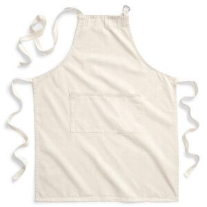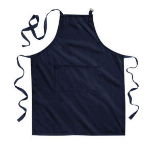 Full bib apron. Deep front pocket. Cotton Herringbone neck tie with sliding adjustable buckle. Cotton Herringbone 100cm waist ties. Fairtrade certified. Fairtrade certified.