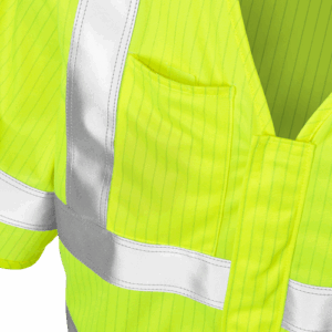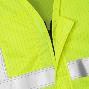 Front zip / Chest pocket with velcro fastening / Worn over EN ISO 11612 garments / Adapted for ATEX environments / Approved according to EN ISO 14116 Index 1 and EN 20471 class 3, fabric is approved according to EN 1149-3 / OEKO-TEX® certified.