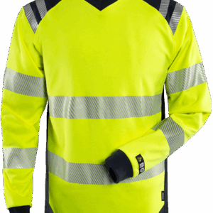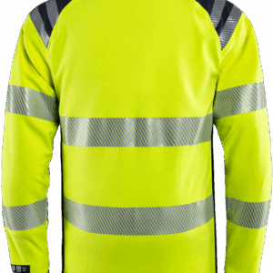 V-neck / Raglan sleeves / Rib-knit neck and cuffs / Approved according to EN 61482-1-2 APC 1, EN 61482-1-1 ELIM 9,5 cal/cm², EN ISO 11612 A1 A2 B1 C1 F1, EN 1149-5 and EN ISO 20471 class 2 – sizes XS-S and class 3 – sizes M-4XL / Approved after 25 washes / Leasing-laundry tested according to ISO 15797 / OEKO-TEX® certified.