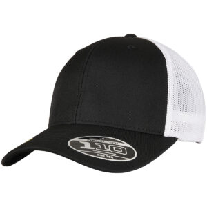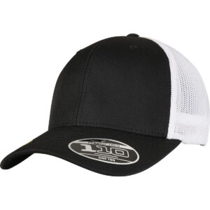 Fly look and environmentally friendly material: the two-tone trucker cap brings together what belongs together. Both, transparent mesh on the back and opaque front of the cap, are made of recycled polyester and thus combine a trendy look with a clear conscience. For providing a classy look the cap comes in black and white. Naturally, it also features a pre-bent, eight-fold stitched visor. Excellent wearing comfort comes through the consistent use of two technologies: integrated Flexfit ribbon and a colour-matched snapback closure for individual size adjustment.