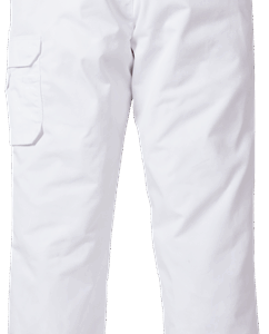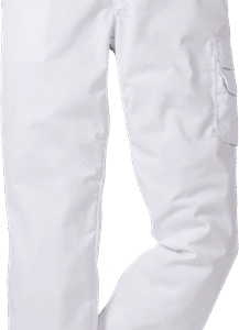 Complies with DIN 10524 standard / Adjustable waist with elastic in back / Metal zip fly /Adjustable leg ends / 2 front pockets with concealed snap fastening / Leg pocket and phone pocket with flap and concealed snap fastening / Zone marking possible with subliminal transfer or embroidery / Leasing laundry-tested according to ISO 15797 / OEKO-TEX® certified.