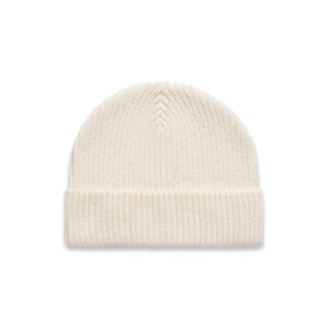 The AS Colour Gauge Beanie, crafted from a heavy-weight blend of 50% recycled wool and 50% recycled acrylic. It features a ribbed knit, cuffed hem, and longer body for warmth. One size fits all, with a tear-out AS Colour label for personalisation.