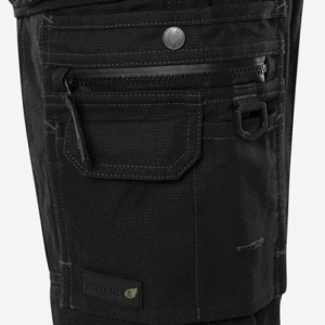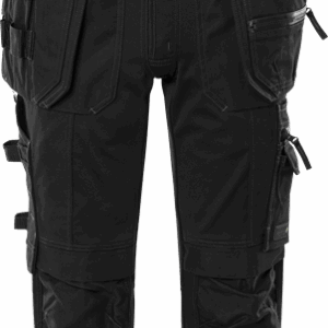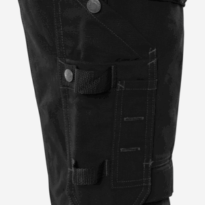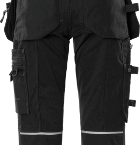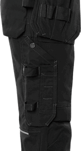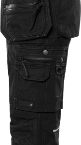 Partly recycled material / With Environmental Product Declaration (EPD) / Large 4-way stretch panels at front, back and legs / 2 CORDURA®-reinforced loose-hanging pockets, one with 2 pockets whereof one with zip, one with 3 smaller pockets and tool loops / 2 front pockets / 2 side pockets, one with zip / 2 CORDURA®-reinforced back pockets with loose bottom / D-ring under loose-hanging pocket / Double reinforced crotch seam / Hammer loop / CORDURA®-reinforced folding rule pocket with tool pocket, pen pocket, button and loop for sheath knife / Large leg pocket with snap fastening, waterproof zip pocket, phone pocket and extra pocket with D-ring for id-card holder / CORDURA®-reinforced knee pockets with outside opening from above / Height adjustment for knee pads in knee pocket / Reflective details at back of legs / Approved according to EN 14404 together with kneepads 124292 / OEKO-TEX® certified / EPD registration number 8320 at environdec.com