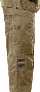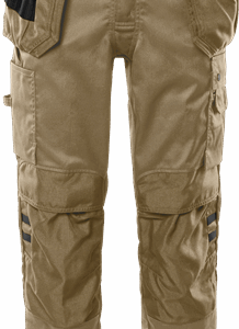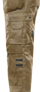 Partly recycled material / With Environmental Product Declaration (EPD) / Mechanical stretch / 2 loose-hanging CORDURA® pockets, one with 3 smaller pockets and tool loops, one with extra pocket / 2 front pockets / 2 CORDURA®-reinforced bellowed back pockets / Loop for id-card or keys at front / Double reinforced crotch seam / Hammer loop on both sides / Right leg pocket with folding rule pocket, button and loop for sheath knife and pen pocket / Left leg pocket with snap fastening, phone pocket and extra pocket with loop for id-card holder / CORDURA®-reinforced knee pockets with outside opening from above / Height adjustment for knee pads in knee pocket / CORDURA®-reinforced leg ends / Reflective details at knees / Approved according to EN 14404 together with kneepads 124292 / OEKO-TEX® certified / EPD registration number 10772 at environdec.com