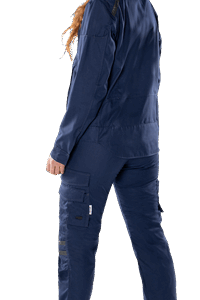 Part of Fristads Green collection / Stand collar / Full length front zip with concealed snap fastening / 2 chest pockets with flap and concealed snap fastening / D-ring under chest pocket / 1 inner pocket with button fastening / 2 front pockets with zip / 4 pen pockets on left sleeve / Adjustable waist / Extended back / Leasing-laundry tested according to ISO 15797 / With EPD (Environmental Product Declaration) – registration number 1702 at environdec.com / OEKO-TEX® certified / RFID chip can be added as a VAS solution.