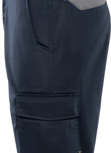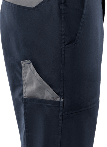 Partly recycled material / With Environmental Product Declaration (EPD) / Mechanical stretch / Rib-knit stretch panels at waist / Concealed front button / 2 front pockets / 2 back pockets / Folding rule pocket and tool pocket / Leg pocket with loop for id-card holder, flap with concealed snap fastening / Leasing-laundry tested according to ISO 15797 / OEKO-TEX® certified / EPD registration number 13208 at environdec.com