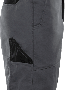 Partly recycled material / With Environmental Product Declaration (EPD) / Mechanical stretch / Rib-knit stretch panels at waist / Concealed front button / 2 front pockets / 2 back pockets / Folding rule pocket and tool pocket / Leg pocket with loop for id-card holder, flap with concealed snap fastening / Leasing-laundry tested according to ISO 15797 / OEKO-TEX® certified / EPD registration number 13208 at environdec.com