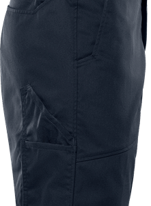 Partly recycled material / With Environmental Product Declaration (EPD) / Mechanical stretch / Rib-knit stretch panels at waist / Concealed front button / 2 front pockets / 2 back pockets / Folding rule pocket and tool pocket / Leg pocket with loop for id-card holder, flap with concealed snap fastening / Leasing-laundry tested according to ISO 15797 / OEKO-TEX® certified / EPD registration number 13208 at environdec.com