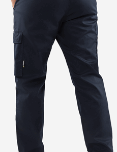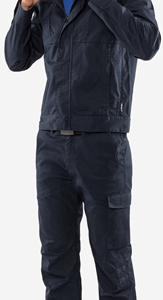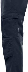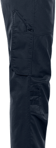 Partly recycled material / With Environmental Product Declaration (EPD) / Mechanical stretch / Rib-knit stretch panels at waist / Concealed front button / 2 front pockets / 2 back pockets / Folding rule pocket and tool pocket / Leg pocket with loop for id-card holder, flap with concealed snap fastening / Pre-shaped knees / Adjustable leg length with 5 cm hem allowance / Approved according to EN 13758-2 UPF 40+ UV protection / Leasing-laundry tested according to ISO 15797 / OEKO-TEX® certified / EPD registration number 13205 at environdec.com