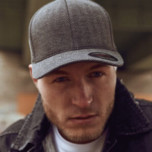 Herringbone melange Flexfit. Sporty shape. Patented Flexfit technology. Classic herringbone pattern. Tweed look. Cool and dry function. BSCI certified. WRAP certified.