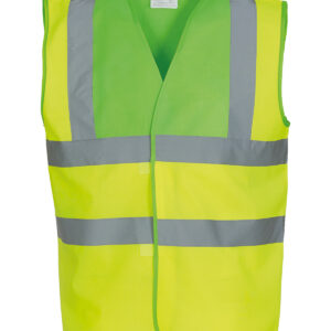 100% Polyester fabric with hook and loop fastening. Two 5cm width reflective tapes around the body and one over each shoulder. Hi-Vis Yellow, Orange, Yellow/Orange conform to EN ISO20471:2013 Class 2. Black, Lime, Navy, Purple, Paramedic Green, Red, Raspberry, Royal Blue Yoke on Hi Vis Yellow conform to EN ISO20471:2013 Class 1. All other colours provide enhanced visibility in all kinds of environments.