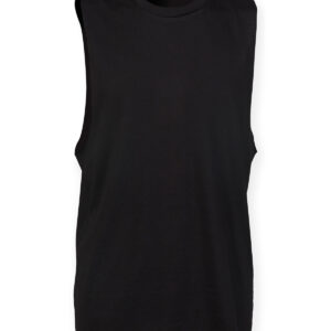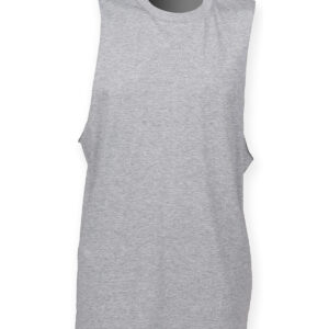 Tear-out SF (Skinnifit) label. Ribbed crew-neck. Raw edge slash armhole and hem. Matches Ladies' SK232 High Neck Slash Armhole Vest. SEDEX certified. Oeko-Tex certified. BSCI certified. Vegan certified.