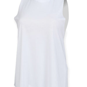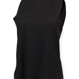 High fashion. High impact. It's all about style and freedom to move with this stretchy ribbed crew neck vest, with raw edge slash armholes and hem. Modern, athletic and cool. Features tear-out label for easy rebranding.