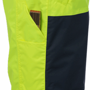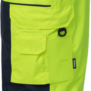 Airtech® breathable, wind and waterproof / Quilted lining / Detachable braces / Belt loops / Adjustable waist / D-ring / 2 front pockets with covered zip / 2 back pockets with flaps and velcro fastening / Folding rule pocket with extra pocket / Leg pocket with flap and velcro fastening, mobile phone pocket with flap and velcro fastening, D-ring and ID-card pocket / Pre-shaped knees / Knee pockets with inside opening / Height adjustment for knee pads in knee pocket / Reinforced thigh panel in contrast colour / Short zip at leg ends / Adjustable leg ends / Waterpillar 20,000 mm / Breathability Airtech® material RET <15 / Approved according to EN 14404 together with kneepads 124292, EN ISO 20471 class 2, EN 342 and EN 343 class 4/1. Shell fabric meets class 4 for water vapour permeability; EN 343 class 4/4 / Colour 271 is approved according to RIS-3279-TOM: 2019 Issue 2 UK Railway Standard / Certified after 25 washes / OEKO-TEX® certified.
