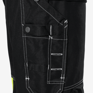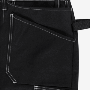 2 tuckable CORDURA®-reinforced loose-hanging front pockets, one with extra pocket, the other with 3 pockets and tool loops / 2 bellowed front and back pockets / 2 D-rings / 2 hammer loops / CORDURA® folding rule pocket with pen pocket, pocket for tools or extra sheath knife, 2 knife buttons and loop / Leg pocket with snap fastening, phone pocket and extra pocket with loop for ID-card holder / Pre-shaped knees / CORDURA®-reinforced knee pockets with inside opening / Height adjustment for knee pads in knee pocket / Approved according to EN 14404 together with kneepads 124292 and EN ISO 20471 class 1 / OEKO-TEX® certified.