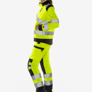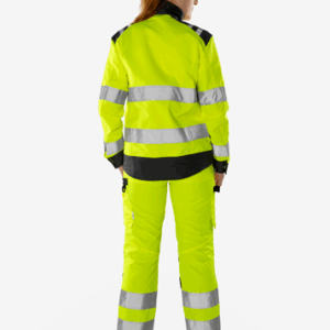 Part of Fristads Green collection / Sustainable / Front placket opening with 2-way zip to top of collar and snap fastening / Chest pocket with zip and inside ID-card holder / Chest pocket with vertical zip / 2 front pockets with zip / Adjustable cuffs with snap fastening / Adjustable waist with buttons / Extended back / Approved according to EN ISO 20471 class 2 – sizes S-M and class 3 – sizes L-5XL and 13758-2 UPF 40+ Solar UV Protective Properties. Colours 271 and 286 are approved according to RIS-3279-TOM issue 1 UK Railway Standard / Approved after 50 washes / Leasing-laundry tested according to ISO 15797 / With EPD (Environmental Product Declaration) – registration number 3878 at environdec.com / OEKO-TEX® certified.