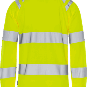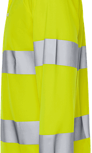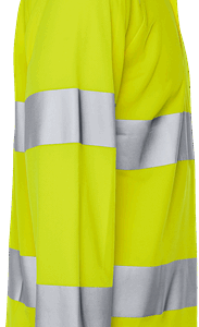 Recycled functional knit material / With Environmental Product Declaration (EPD) / Stretch reflective transfers / Collar in double material / Raglan sleeves with cuff in double material / 5 cm gusset with gap in the reflective transfer in sides and sleeves for extra comfort / Approved according to EN ISO 20471 class 3. Colour 230 is approved according to RIS-3279-TOM issue 2 UK Railway Standard / Certified after 25 washes / OEKO-TEX® certified / EPD registration number 16866 at environdec.com