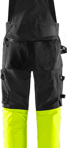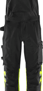 Part of Fristads Green collection / Sustainable / 4-way stretch fabric / Adjustable elasticated braces / Large chest pocket with zip and pen pocket / Inside mobile phone pocket / Rib-knit stretch panels at waist / Durable ripstop 4-way stretch at seat and back of thighs / Zip fly / D-ring / 2 front pockets / 2 bellowed back pockets, one with zip / Double reinforced crotch seam / Hammer loop / CORDURA®-reinforced folding rule pocket with tool pocket, pen pocket, buttons and loops for sheath knife / Leg pocket with snap fastening, zip pocket and D-ring / CORDURA®-reinforced knee pockets with inside opening / Height adjustment for knee pads in knee pocket / CORDURA®-reinforced leg end / Hidden boot hook / Approved according to ISO 20471 class 1, EN 14404 together with kneepads 124292 and EN 13758-2 UPF 40+ Solar UV Protective Properties / Certified after 50 washes / With EPD (Environmental Product Declaration) – registration number 3891 at environdec.com / OEKO-TEX® certified.