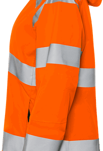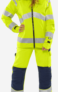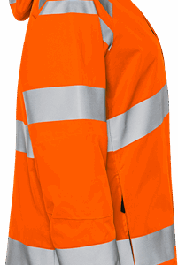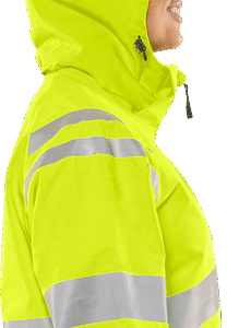 Recycled material / With Environmental Product Declaration (EPD) / 4-way stretch material / Waterproof, windproof and breathable / Taped seams / Detachable and adjustable hood with reinforced peak / Fleece-lined collar / Full-length water-repellent two-way front zip with inside placket / Chest pocket with concealed vertical zip and inside loop for id-card holder / Front pockets with zip / Inside mesh pocket with elastic edge / Pre-shaped sleeves / Adjustable sleeve end with rounded upper side / Elastic inner cuff with thumb grip / Adjustable drawstring at bottom / Extended back / Zip in lining for transfer / Waterpillar 13,000 mm / RET <15 / Approved according to EN ISO 20471 class 3 and EN 343 class 4/4. Colour 230 is approved according to RIS-3279-TOM issue 1 UK Railway Standard / Certified after 20 washes / OEKO-TEX® certified / EPD registration number 06054 at environdec.com