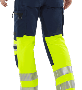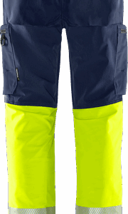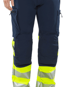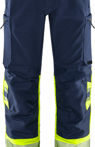 Part of Fristads Green collection / Sustainable / 4-way stretch fabric / Rib-knit stretch panels at waist / Durable ripstop 4-way stretch at seat and back of thighs / Concealed front button / D-ring / 2 front pockets / 2 bellowed back pockets, one with zip / Double reinforced crotch seam / Large bellowed leg pocket with snap fastening and zip pocket / Leg pocket with snap fastening, zip pocket and D-ring / CORDURA®-reinforced knee pockets with inside opening / Height adjustment for knee pads in knee pocket / CORDURA®-reinforced leg end / Hidden boot hook / Approved according to ISO 20471 class 1, EN 14404 together with kneepads 124292 and EN 13758-2 UPF 40+ Solar UV Protective Properties / Certified after 50 washes / With EPD (Environmental Product Declaration) – registration number 3888 at environdec.com / OEKO-TEX® certified.