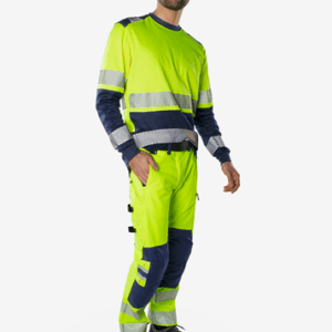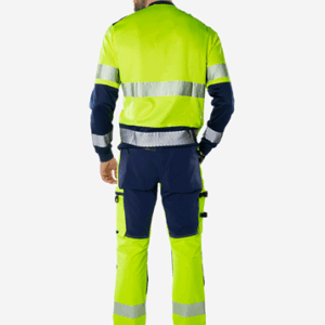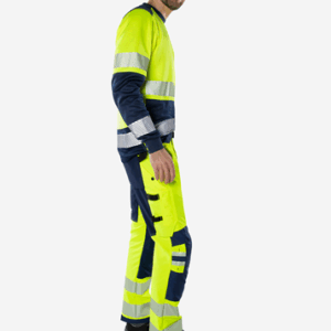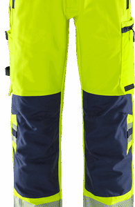 Part of Fristads Green collection / Sustainable / 4-way stretch fabric / Rib-knit stretch panels at waist / Durable ripstop 4-way stretch at seat and back of thighs / Concealed front button / D-ring / 2 front pockets / 2 bellowed back pockets, one with zip / Double reinforced crotch seam / Hammer loop / CORDURA®-reinforced folding rule pocket with tool pocket, pen pocket, buttons and loops for sheath knife / Leg pocket with snap fastening, zip pocket and D-ring / CORDURA®-reinforced knee pockets with inside opening / Height adjustment for knee pads in knee pocket / CORDURA®-reinforced leg end / Hidden boot hook / Approved according to ISO 20471 class 2, EN 14404 together with kneepads 124292 and EN 13758-2 UPF 40+ Solar UV Protective Properties. Colour 271 is approved according to RIS-3279-TOM issue 1 UK Railway Standard / Certified after 50 washes / With EPD (Environmental Product Declaration) – registration number 3888 at environdec.com / OEKO-TEX® certified.