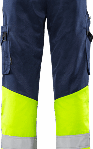 Part of Fristads Green collection / Sustainable / Rib-knit stretch panels at waist / Concealed front button / 2 front pockets / 2 back pockets / Double reinforced crotch seam / Hammer loop / CORDURA®-reinforced folding rule pocket with tool pocket, pen pocket, button and loop for sheath knife / Leg pocket with snap fastening, pocket with flap and velcro fastening, D-ring / CORDURA®-reinforced knee pockets with inside opening / Height adjustment for knee pads in knee pocket / CORDURA®-reinforced leg end / Leg length can be lengthened by 5 cm or shortened by 3 cm / Approved according to EN ISO 20471 class 1, EN 14404 together with kneepads 124292 and EN 13758-2 UPF 40+ Solar UV Protective Properties / Approved after 50 washes / Leasing-laundry tested according to ISO 15797 / With EPD (Environmental Product Declaration) – registration number 3881 at environdec.com / OEKO-TEX® certified.