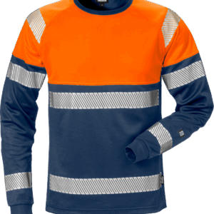 Rib-knit collar and cuffs / Raglan sleeve / Striped reflective transfer / Cotton inside / Approved according to EN 13758-2 UPF 40+ Solar UV Protective Properties and EN ISO 20471 class 1 / Certified after 25 washes / OEKO-TEX® certified.
