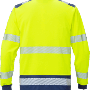Rib-knit neck and cuffs / Striped reflective transfer / Cotton inside / Approved according to EN 13758-2 UPF 40+ Solar UV Protective Properties and EN ISO 20471 class 2 in size XS and class 3 in sizes S-4XL / Certified after 25 washes / OEKO-TEX® certified.