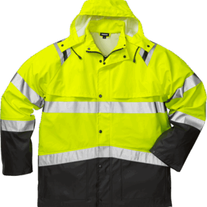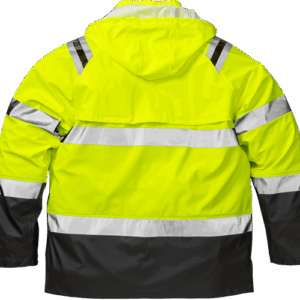 Stretch material / Welded seams / Detachable hood with drawstring / Two-way zip under front placket with buttons / Ventilated yoke at front and back / Concealed D-ring for ID-card holder / 2 front pockets right with mobile pocket / Adjustable sleeves / Approved according to EN ISO 20471 class 2 in size 2XS and class 3 in sizes XS-3XL and EN 343 class 4/1 / OEKO-TEX® certified.