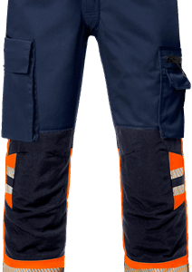 Stretch panels at sides, yoke and crotch / 2 side pockets / D-ring / 2 back pockets with zip / Double reinforced crotch seam / Large bellowed leg pocket with folding rule pocket and document pocket with velcro fastening / Multifunction leg pocket with phone pocket, ID-card pocket, zip pocket and folding rule pocket / CORDURA®-reinforced knee pockets with inside opening / Height adjustment for knee pads in knee pocket / CORDURA®-reinforced leg end / Approved according to EN 14404 together with kneepads 124292 and EN ISO 20471 class 1 / Certified after 25 washes / With EPD (Environmental Product Declaration) – registration number 3881 at environdec.com / OEKO-TEX® certified.