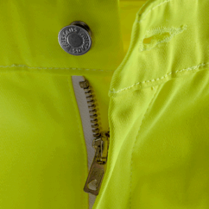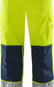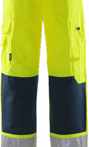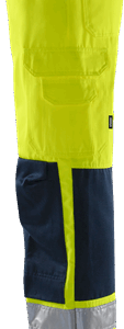 2 side pockets / 2 back pockets / D-ring / Leg pocket with flap and velcro fastening, phone pocket with flap and velcro fastening / Folding rule pocket with pen pocket and button and loop for sheath knife / Knee pockets with outside opening / Height adjustment for knee pads in knee pockets / Approved according EN 14404 together with kneepads 124292 and EN ISO 20471 class 2 / Certified after 25 washes / OEKO-TEX® certified.