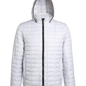 Contrast coil zip on centre front with signature zip puller and mouse tail piping on each side of zip opening. Front and back square stitched baffles with linear side narrow baffles. 250gsm lightweight polyester fill. Fully-lined in tonal polyester. Inset welt pocket with concealed zip opening and double zip garages. Contrast stretch binding on hem, cuffs and hood opening for added protection. Internal piping around inside facing. Secure hood attached to collar. Internal zipped opening on back panel for embroidery access. Internal welt pocket. Product contains no branded neck label.* Removable Kimble or looped garment tags. Inner seam label holds important product information on one label with a second label containing brand information which can be cut-away.