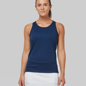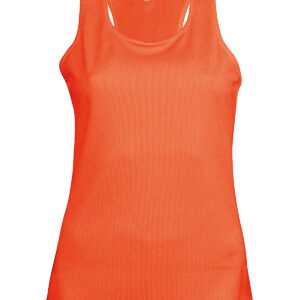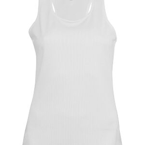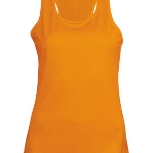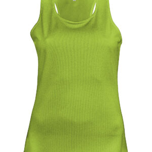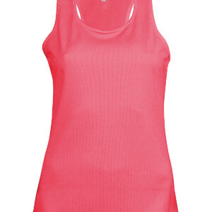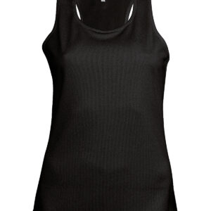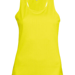 100% Polyester. Quick drying Lightweight fabric. Racer back style. Bound neck and armholes. Twin needle finishing. BSCI certified. Oeko-Tex certified.