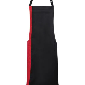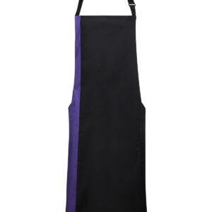 A classic full bib apron with a contrast coloured panel appearing along the length of the right hand side which can be an excellent branding solution. The colours used on this apron are part of the 'Colours Collection' from Premier. Featuring two slanted side pockets and useful adjustable buckle on the neckband.